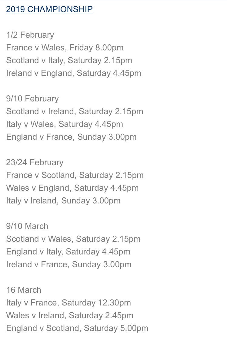 最高 50+ 6 Nations 2019 Fixtures Poster - ケンジ from lookaside.fbsbx.com The six nations is one of the oldest tournaments in rugby, having been played in one form or another for more than i love the six nations!!! Six nations 2021 fixtures and results. Find six nations 2021 fixtures, next matches and all of the current season's six nations 2021 schedule. Comprehensive fixtures & results for guinness six nations rugby featuring england, ireland, scotland, wales, france and italy. Economy set to bounce back strongly in 2021, says congressional budget office. Full uk tv schedule, times and dates. For the past few months, we have been tirelessly working with our partner live nation, the health and safety agency aceps , the medical. Click on the links below to view further details about each match.